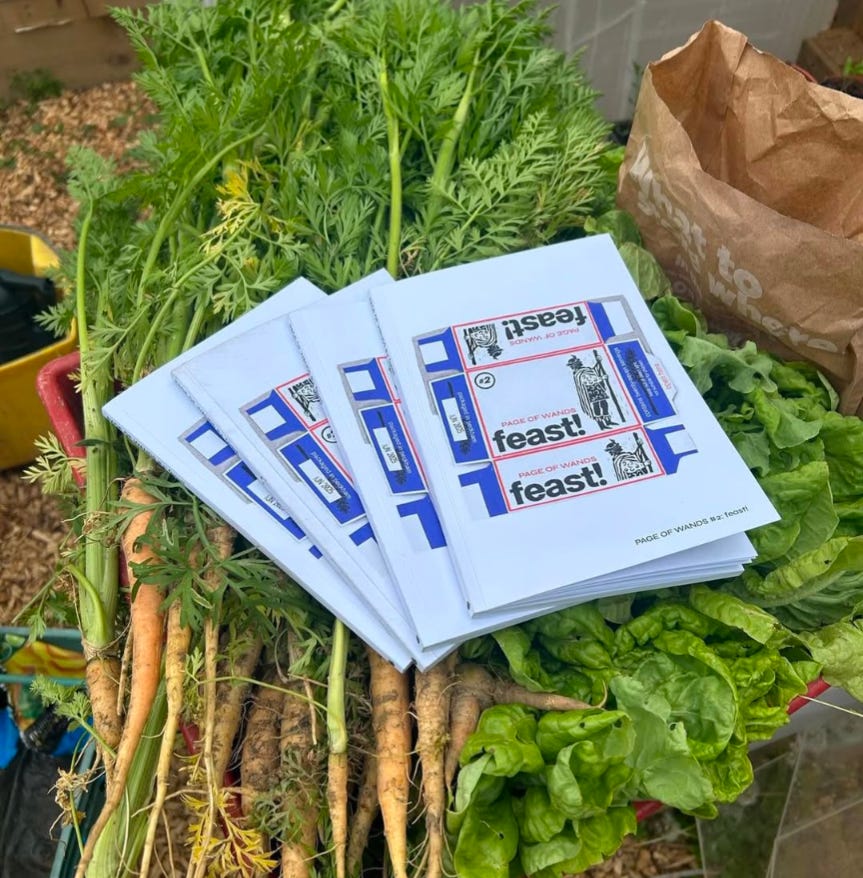 You can purchase the zine Page of Wands 2: Feast at all good independent London bookshops. Or by post if you send them a nice email.3 The cover looks like a packet of something milky or maybe minty.