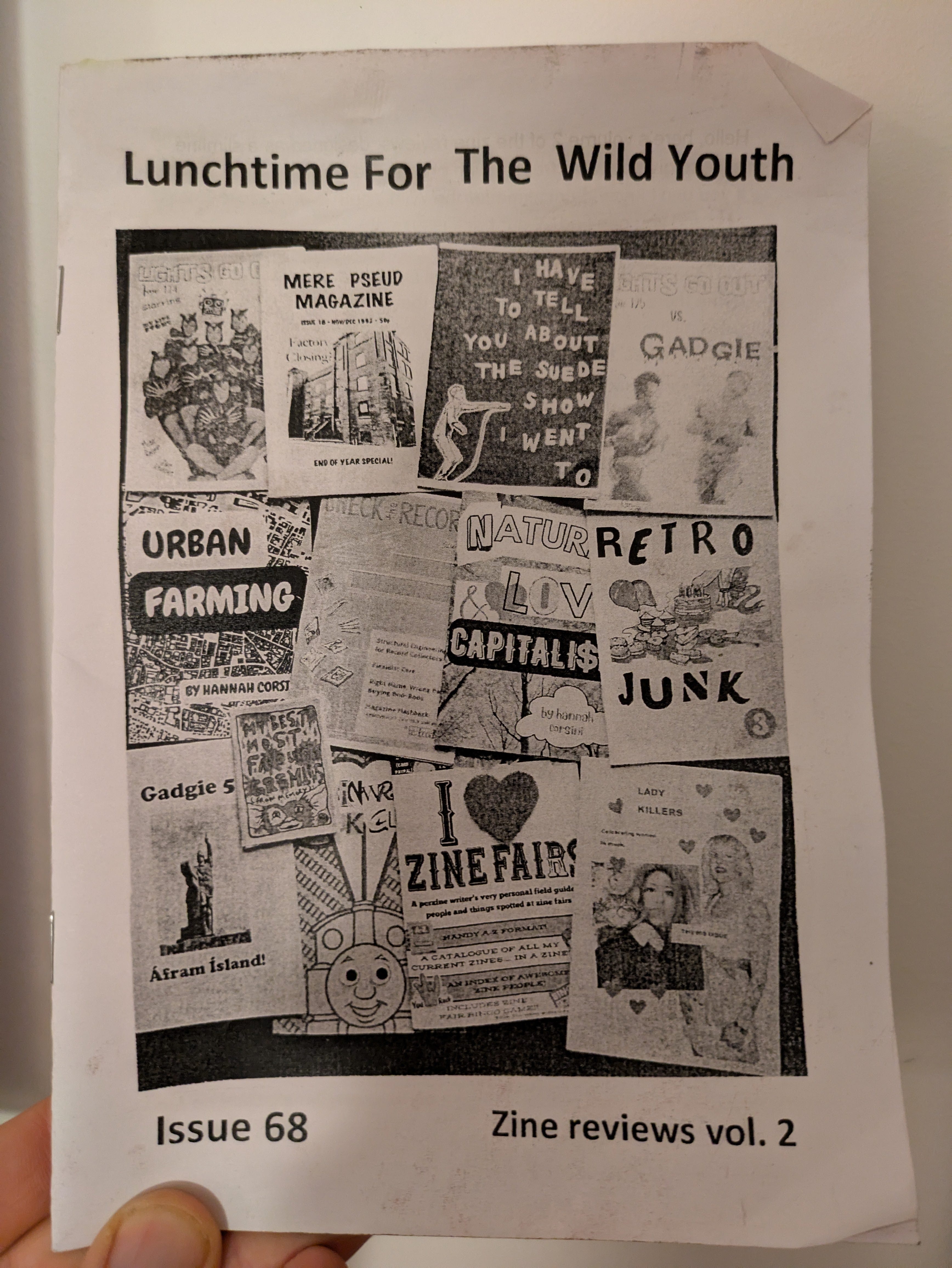 - And finally, Lunchtime for Wild Youth, a brilliantly low-tech zine reviewing other zines. Which inspired this section! A tribute of love for DIY print culture.